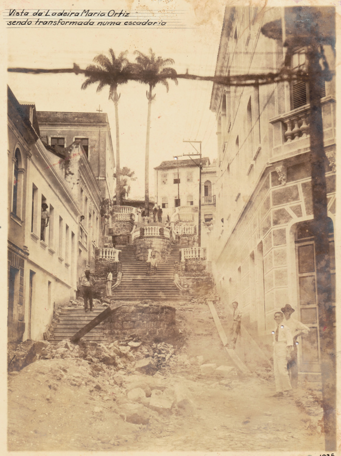 Quando penso na Escadaria Maria Ortiz, que agora completa cem anos, sinto que ela me olha como um espelho. Em 1924, Florentino Avidos entregava à cidade não apenas um acesso entre a Cidade Alta e o Porto, mas um monumento de granito que carregava a promessa de futuro. Eu me impressiono com essa visão de longo prazo. Ele pensava em décadas, não em curtidas. Onde tocava, surgia infraestrutura que ainda hoje sustenta nossa vida cotidiana.